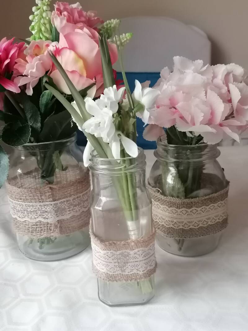 Mixed size Hessian & Lace Jars